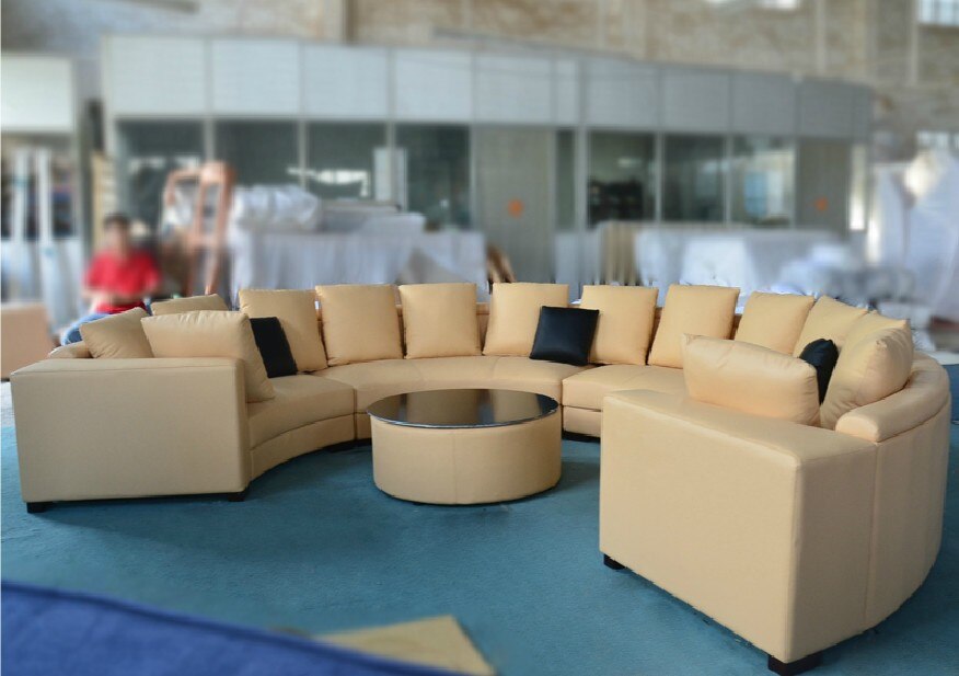 Ghế sofa tròn tạo thành một cánh cung không có gối. Ghế được chia làm ba phần ghép lại với nhau, thường có màu trắng kem. Những mẫu này thích hợp với những không gian rộng.