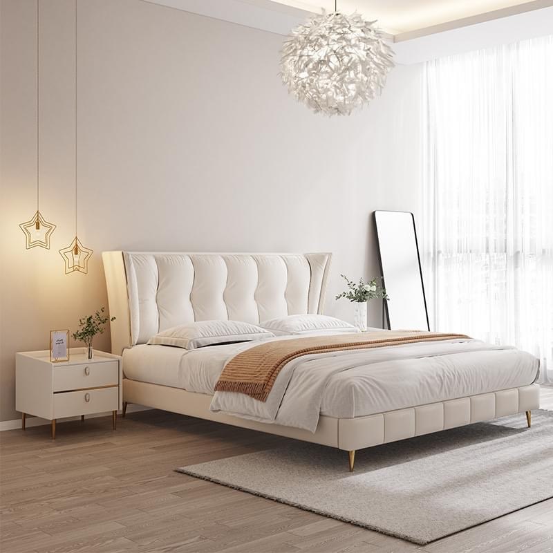 Chất liệu bọc giường : Quý khách có thể lựa chọn vải hay da công nghiệp-microfiber hay da bò Ý 100% và chọn màu sắc theo thiết kế, phong thủy hay sở thích.