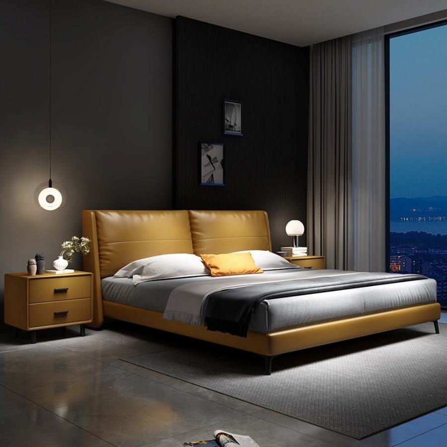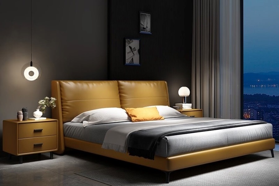 + Chất liệu bọc giường : Quý khách có thể lựa chọn vải hay da công nghiệp-microfiber hay da bò Ý 100% và chọn màu sắc theo thiết kế, phong thủy hay sở thích.