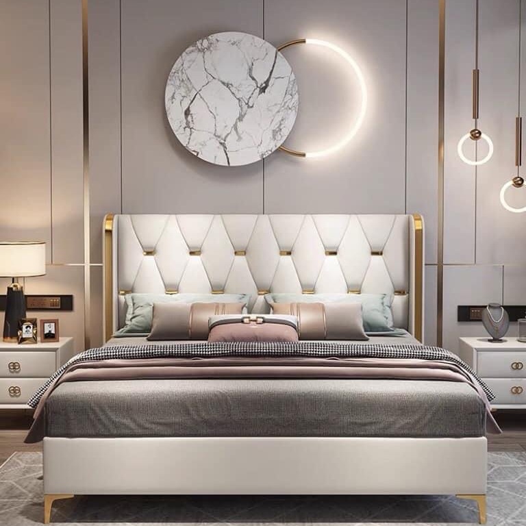 Chất liệu bọc giường : Quý khách có thể lựa chọn vải hay da công nghiệp-microfiber hay da bò Ý 100% và chọn màu sắc theo thiết kế, phong thủy hay sở thích.